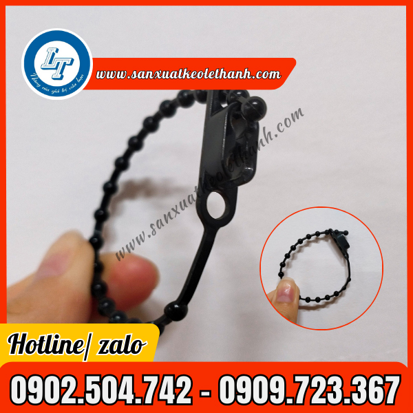 Sản phẩm này có màu đen bóng, thường làm từ nhựa nylon PA66 với thiết kế dạng dây gồm 19 hạt tròn nhỏ đường kính 3mm, rải đều cố định trên dây. Mỗi hạt cách nhau 1 đến 1.5cm. Chi tiết này đã giúp tăng tính linh hoạt cho đạn xỏ khi treo tag.