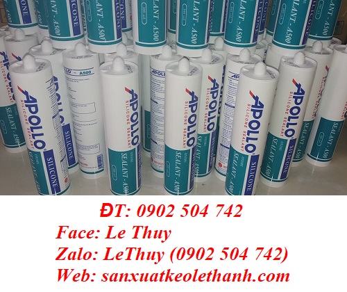 Keo Apollo A500: được chiết xuất 100% thành phần keo silicone nhập khẩu không pha trộn phụ gia hay tạp chất, nên có độ bám dính khá cao và chịu được sự biết đổi của thời tiết khắc nghiệt nhất. Sản phẩm dùng để gắn kết các mối nối trong nhà và ngoài trời, gắn các bề mặt xốp, và không xốp, khung cửa, cửa sổ và một số loại chất dẻo. Khi tiếp xúc với không khí sản phẩm sẽ tạo thành một dạng nhựa như cao su, có khả năng chịu được thời tiết biến đổi, độ ẩm, ozon, tia cực tím rất tốt. Sản phẩm không có mùi hôi thích hợp khi sử dụng trong không gian kín