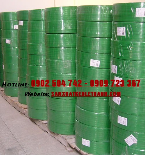Chất liệu cấu tạo dây đai nhựa màu xanh đương, xanh lá là nhựa Polypropylen tổng hợp có khả năng dai bền, chịu lực tốt. Dây đai được đóng thành dạng cuộn có trọng lượng 10kg một cuộn. Chiều dài của mỗi cuộn dao động từ 900m, 1000m, 1200m. Đa phần dây đai nhựa màu xanh đương, xanh lá có kích thước từ 1F2, 1F4 . Dây có sợi dài, đều đặn phù hợp cho máy đóng đai tự động và bán tự động. Bề dày của sản phẩm từ 0.60mm, 0.90mm.